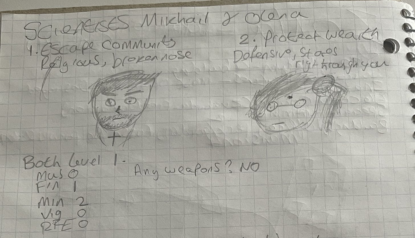 d6 Scientists = 2 Mikhail and OlenaThere were 2 scientists at the outpost, and neither seemed to notice her approach, which Lina thought just went to show that even smart people can be very stupid sometimes. When they saw her, they were on edge at first, but Lina’s easy charm and lack of blood thirst made it clear she was not their enemy.